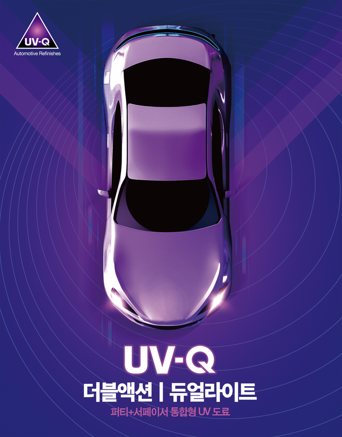 UV-Q시스템은 전용 도료 ‘UV-Q 더블액션 Zero VOC’와 자외선 조사기 ‘UV-Q 듀얼라이트’로 구성됐다. 이 시스템은 5개로 나뉘어진 자동차 보수 공정 단계를 3개로 줄여준다.