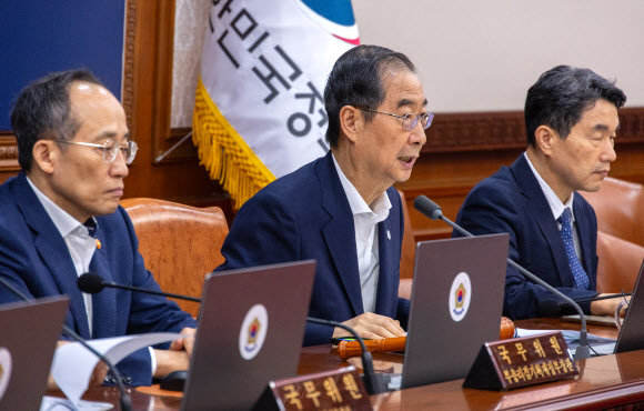 | 한덕수 국무총리가 5일 오전 서울 종로구 정부서울청사에서 열린 국무회의에 참석해 발언하고 있다./사진:연합뉴스 |