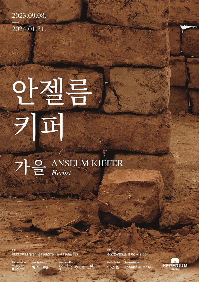현대미술의 거장 안젤름 키퍼(Anselm Kiefer)의 국내 첫 미술관 전시 ‘가을 Herbst’가 2024년 1월31일까지 대전 헤레디움에서 열리고 있다. 안젤름 키퍼는 파리 루브르 박물관으로부터 조르주 브라크 이후 최초로 영구 설치 작품을 의뢰받는 등 세계 미술사의 중심인물로 꼽히는 작가다.