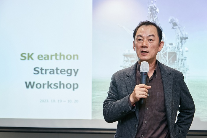 | 명성 SK어스온 사장이 지난 19일부터 이틀 간 서울시 광진구 워커힐 아카디아에서 열린 ‘SK어스온 하반기 전략 워크숍’에서 인사말을 하고 있다. / SK이노베이션 제공 |