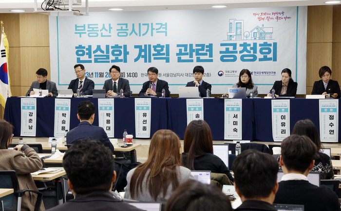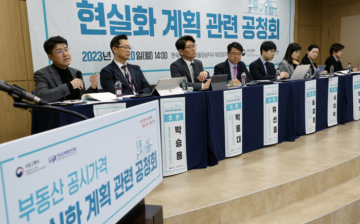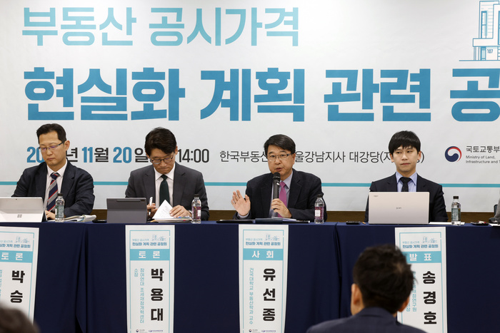 20일 오후 서울 서초구 한국부동산원 서울강남지사에서 열린 '부동산 공시가격 현실화 계획 관련 공청회'에서 유선종 건국대 부동산학과 교수의 사회로 패널토론이 진행되고 있다.