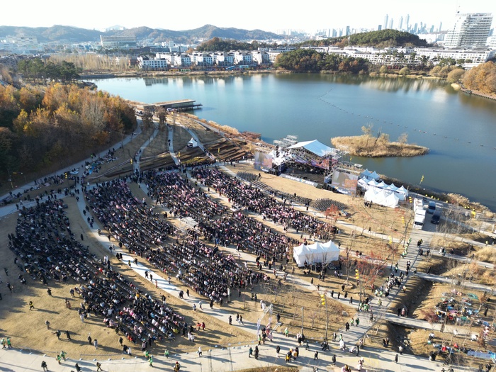 | 100만 화성 미래비전 선포식을 축하하기 위해 동탄호수공원을 찾은 시민들 / 사진 : 화성시 제공 |