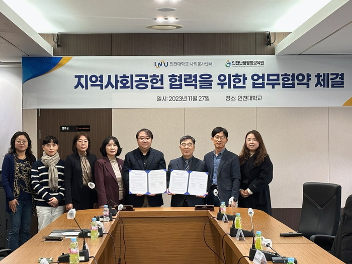 [대한경제=박흥서 기자]인천대학교는 27일 대학본부에서 인천난정평화교육원(원장 이종태)과 지역사회 발전과 민·학 협력 체계의 구축을 위한 업무협약을 체결했다.