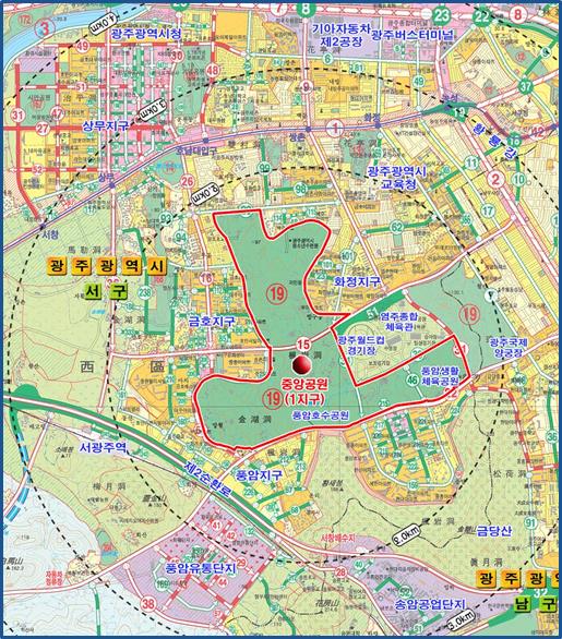 | 중앙근린공원(1지구) 민간공원 조성사업 위치도. /자료= 광주광역시 |