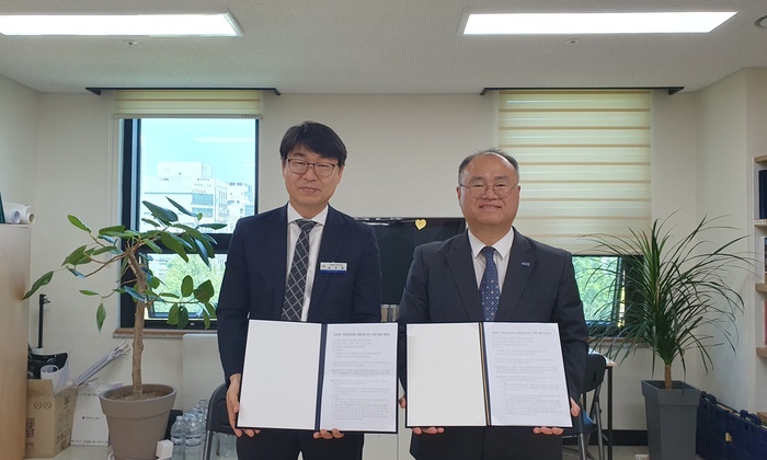 | 지난 3일 대전광역시교육청에서 김상기 한국교육시설안전원 공제사업처장(오른쪽)과 김구환 장학관(Wee 센터장)이 전문 상담 인력 역량 강화 연수 위탁 교육 계약을 체결했다. 사진: 한국교육시설안전원 제공 |