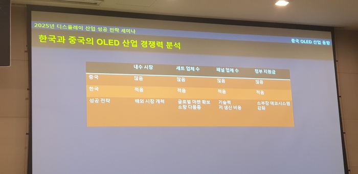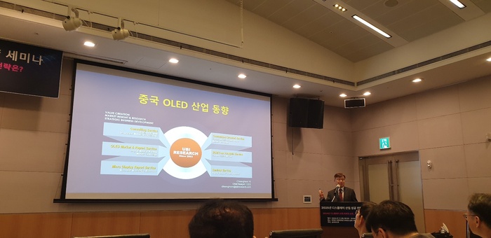 | 이충훈 유비리서치 대표가 11일 여의도 전경련회관에서 ‘2025년 디스플레이 산업 성공 전략 세미나’를 개최하고, 중국 디스플레이 동향에 대해 설명하고 있다. 심화영기자 |