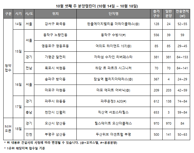 | 10월 셋째 주 분양 일정. /사진:리얼투데이 제공 |