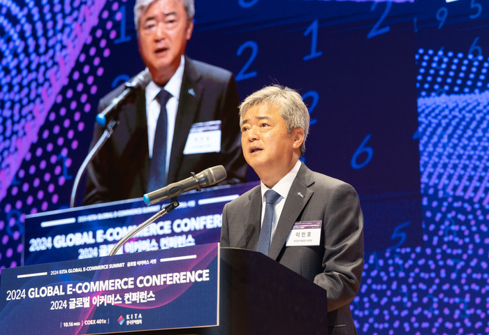 | 한국무역협회와 산업통상자원부가 16일 삼성동 코엑스에서 개최한 '2024 KITA 글로벌 이커머스 서밋'에서 한국무역협회 이인호 부회장이 개회사를 하고 있다. / 한국무역협회 제공 |