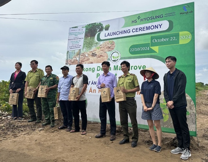 HS효성첨단소재는 지난 22일 베트남 짜빈성 미롱남 마을에서 현지 사회적기업 '맹그러브'와 함께 'HS효성첨단소재 메콩델타 맹그로브 프로젝트' 착수식을 열었다고 23일 밝혔다. 이날 행사에서 500그루의 맹그로브 묘목을 심었으며, 앞으로 2헥타르(ha) 면적에 총 4000그루를 식재할 계획이다.