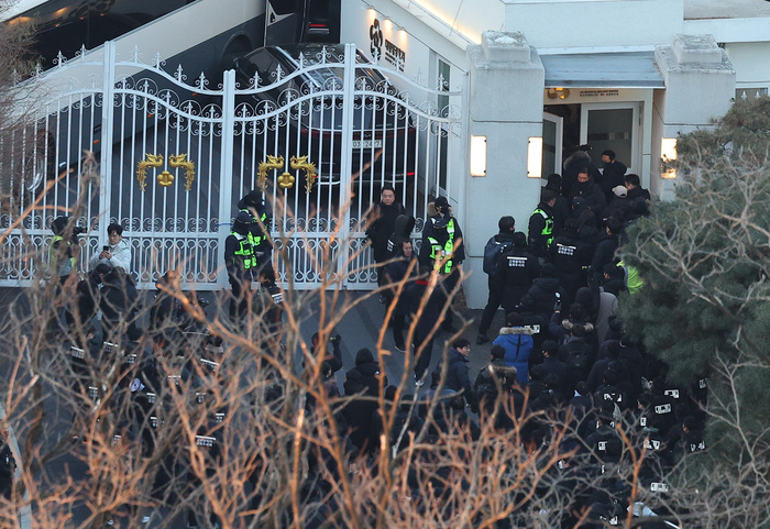 이후 공수처와 경찰 체포팀은 진입 시도 약 2시간 반 만인 이날 오전 7시30분쯤 사다리를 타고 6중으로 설치된 차벽을 넘어 1차 저지선을 통과해 관저로 진입했다.