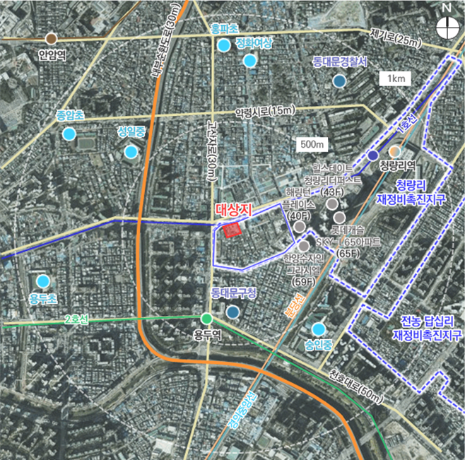 이를 통해 용두1재정비촉진구역(2지구)은 기존의 90m, 27층 이하에서 155m, 49층 이하로 높이 규제가 완화, 2040 도시기본계획상 청량리ㆍ왕십리 광역중심지 내 경관을 고려한 조화로운 높이 계획을 수립할 수 있다.