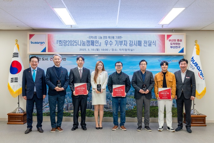 부산 부산진구(구청장 김영욱)는 지난 10일 부산사회복지공동모금회와 함께 ‘희망2025나눔캠페인 우수기부자 감사패 전달식’을 개최했다고 13일 전했다.