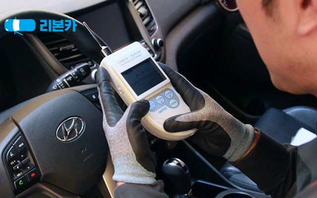| 리본카의 전문 조향사가 차량 내부 냄새를 측정하고 있다./사진: 리본카 제공 |