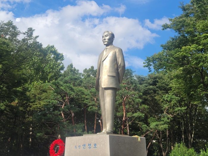 공원에는 선생의 묘소와 함께 전신상도 있다. 50여년 전 공원 문을 열 때 세운 동상이 부식되고 안전에도 문제가 있어 당시 국가보훈처와 강남구청, 삼성전자가 새로 상을 세웠다. 여느 동상들과 달리 은빛인데 흐트러짐 없이 빛나는 선생의 모습과 같다는 느낌이 들었다.