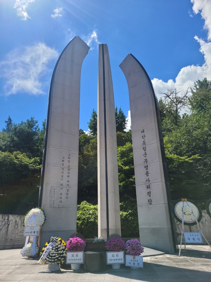 현충원에 들어서서 현충문, 현충탑을 지나 더 오르면 독립유공자묘역이 나오고 이들을 기리는 충열대, 무후선열제단, 임시정부요인묘역, 대한독립군무명용사위령탑까지 오르게 된다.