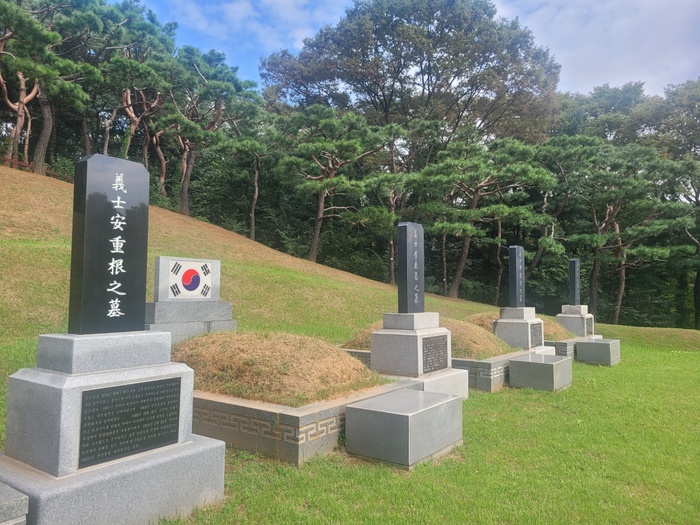 | 안중근 의사의 가묘와 삼의사 묘소. |