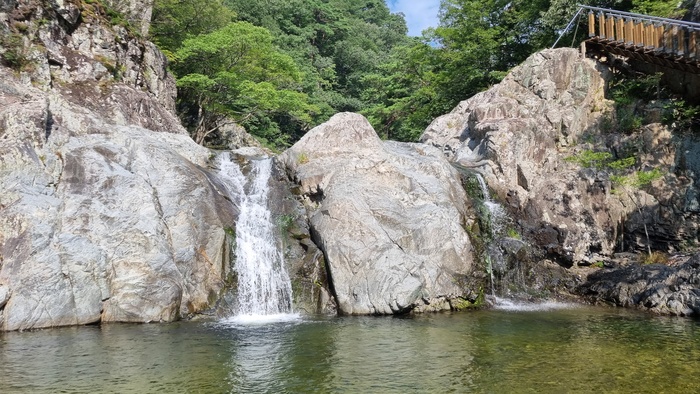 계곡길을 따라가다 보니 폭포가 시작된다. 첫번째는 은폭포다. 좁은 바위틈을 벗어나 넓게 흩뿌려지는 물줄기가 시원스럽다.