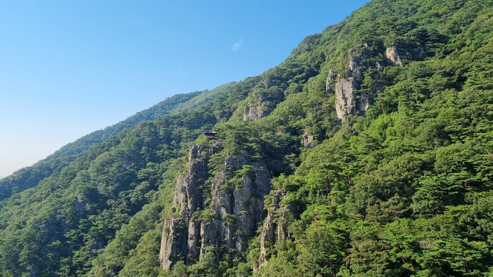 가파른 암벽 위의 정자가 계곡을 말없이 보고 있는 모습인데 수묵 산수화에서 많이 본 그런 풍경이다. 잠시 시간이 멈춘 듯한 기분이다.