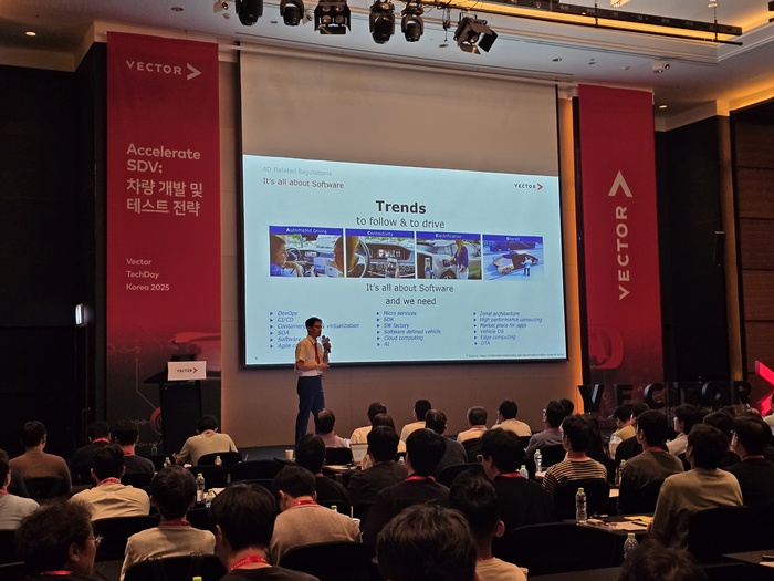 벡터코리아는 이번 행사에서 가상제어기 SIL-HIL 테스트, AI 기반 CAPL 자동생성, DevOps 기반 SW Factory 등 SDV 시대 대비 통합 개발 솔루션도 함께 공개했다. 행사에는 완성차 OEM과 1ㆍ2차 부품사 등 약 500여명이 참석했다.