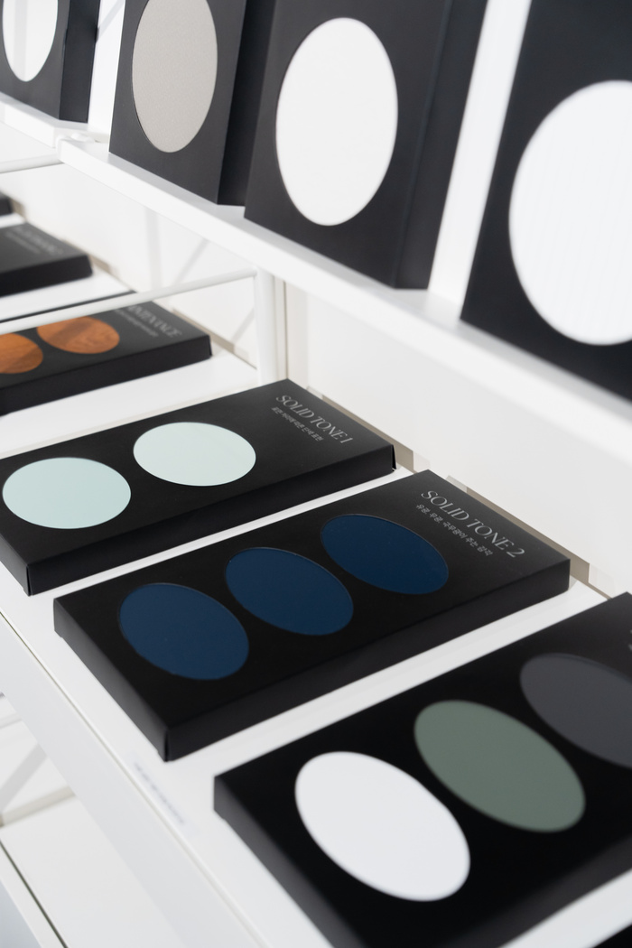 전시 공간에는 총 50여 종의 자재가 동원됐다. 인테리어필름 보닥 ‘내추럴 패브릭(NF906)’은 실제 직조 원단의 결을 구현한다. 벽지 큐피트 골드 ‘플러스터(5072-5)’는 미장 질감을 딥엠보스로 재현했다. 칸스톤 ‘크리스탈로’는 층층이 쌓인 구조로 밀도감 있는 질감을 보여준다. 이외에도 외장재, 바닥재, 단열재 등 다양한 제품이 전시된다.