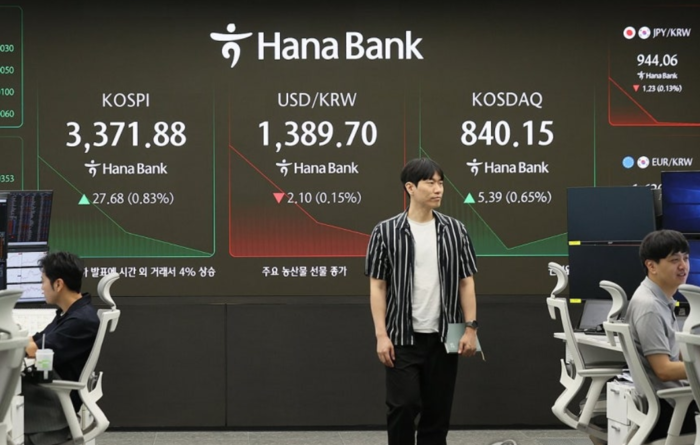 12일 하나은행 딜링룸에서 직원들이 업무를 보고 있다/사진=연합뉴스 |