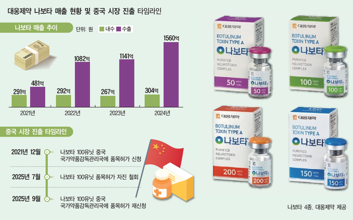 이번 재도전은 나보타의 압도적인 글로벌 성과에 힘입은 것으로 분석된다. 지난해 나보타의 수출 매출은 1560억원으로 2023년(1141억원) 대비 36.7% 증가하며 전체 매출의 83.7%를 차지했다.