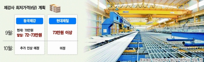 현대제철도 동참한다. 현대제철 관계자는 “동국제강의 추가 인상 이전에 더 높은 수준의 하한선을 정해 그 밑으로는 팔지 않을 계획”이라고 밝혔다.