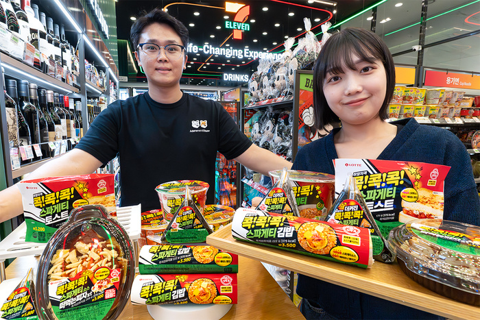 세븐일레븐이 오뚜기와 손잡고 간편식 4종을 출시했다. 신제품은 1020세대에게 인기가 높은 오뚜기 ‘콕!콕!콕!’ 스파게티 소스를 활용해 삼각김밥, 김밥, 피자, 토스트로 구성했다. 대표 상품은 ‘더커진스파게티삼각김밥’과 ‘스파게티김밥’이다. 스파게티 소스를 넣은 볶음밥과 햄, 콘, 체다치즈로 풍미를 살렸으며, 외국인 관광객에게도 인기 높은 K-푸드 김밥 트렌드를 반영했다. 실제 세븐일레븐 김밥 매출은 지난해 20%에 이어 올해도 10% 이상 늘었다. 이외에도 스파게티소스와 피자소스를 함께 넣은 ‘스파게티소스떠먹는피자’, 페퍼로니와 치즈를 더한 ‘스파게티토스트’를 출시했다.