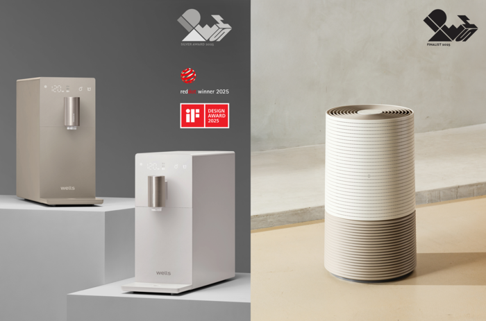| 교원 웰스(Wells)의 직수정수기 ‘슬림원’이 ‘2025 IDEA 디자인 어워드’ 홈 부문에서 은상을 수상했다. 지난 3월 ‘iF 디자인 어워드’ 본상, 4월 ‘레드닷 디자인 어워드’ 본상에 이어 세계 3대 디자인상을 거머쥐었다. IDEA 디자인 어워드 은상 ‘슬림원 직수정수기(왼쪽)’ 본상 ‘에어가든 공기청정기(오른쪽)’. /사진:교원 |