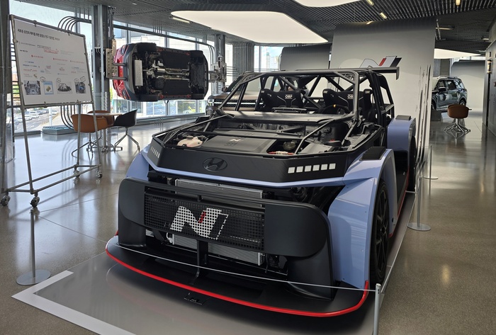 3층으로 내려가면 현대차의 고성능 브랜드 N의 세계가 펼쳐진다. 이곳의 하이라이트는 최대 650마력의 성능을 자랑하는 ‘RN24 롤링랩’이다. 기존 차량 대비 300㎏을 줄인 이 연구차는 현대차가 모터스포츠를 통해 축적한 기술력의 결정체다.