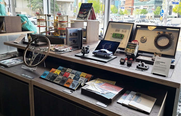 헤리티지 섹션에는 한국 자동차 산업의 출발점인 포니부터 희귀한 빈티지 컬렉션까지 전시됐다. 개인 컬렉터들이 소장하던 미니카와 카탈로그 등을 직접 수급해 구성했으며, 일부 아이템은 실제 구매도 가능하다. 특히 1927년 이탈리아의 전설적인 레이스 ‘밀레 밀리아’ 당시 사용된 로드북은 내비게이션이 없던 시절 운전자들이 지도를 보며 길을 찾던 모습을 보여주는 귀중한 자료다.