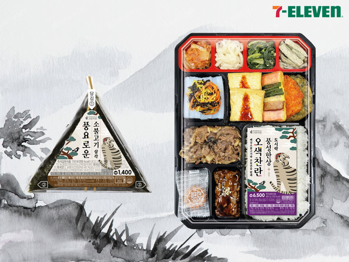 세븐일레븐이 가격을 낮춘 추석 간편식 2종을 30일 출시한다. ‘오색찬란풍성한상도시락’은 작년 6900원에서 400원 인하했다. 소불고기를 메인으로 모둠전·각종나물 등 12가지 반찬을 담았다. 함께 출시되는 ‘소불고기삼각김밥’은 간장 불고기소스 양념밥에 소불고기ㆍ양배추ㆍ팽이버섯을 넣어 뚝배기 불고기 맛을 구현했다. 두 상품 모두 전통 민속화(호랑이ㆍ까치) 패키지로 명절 분위기를 연출한다. 세븐일레븐은 10월 31일까지 도시락을 카카오페이머니나 농협카드로 결제시 20% 현장할인 혜택을 제공한다.