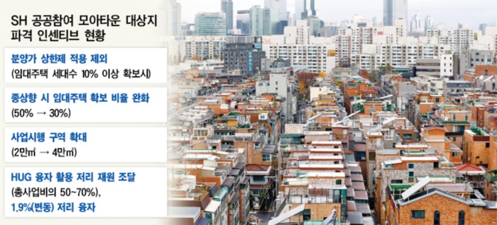 또 SH와 공동시행을 하면 종상향 시 임대주택 확보비율도 기존 50%에서 30%까지 완화한다. 사업시행구역도 기존 최대 2만㎡에서 4만㎡로 2배 확대한다.