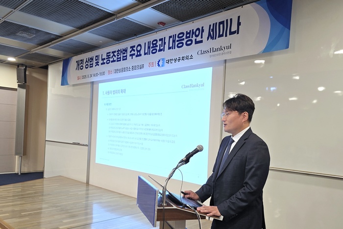 법무법인 클라스한결의 이상도 변호사는 24일 서울 중구 대한상공회의소에서 열린 ‘개정 상법 및 노동조합법 주요 내용과 대응 방안’ 세미나에서 “노란봉투법은 근로자의 권리를 강화하려는 취지를 담고 있지만, 기업 입장에서는 노사 관계와 경영 전반에 직결되는 중대한 변화를 가져오게 될 것”이라며 이 같이 밝혔다.