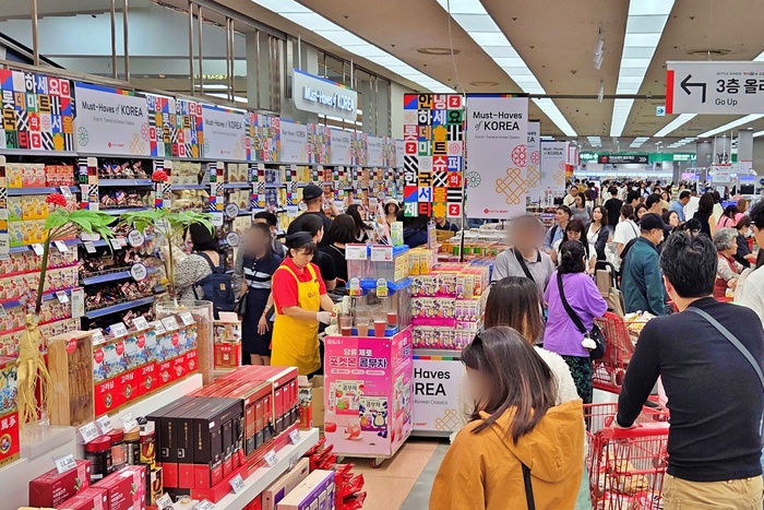 롯데마트가 30일부터 다음달 15일까지 외국인 특화 10개 점포에서 ‘K-푸드 페스타’를 진행한다. 올해 1~7월 방한 외국인이 전년 대비 15.9% 증가한 가운데 10월 중국 국경절 등 연휴 특수를 겨냥한 행사다. 서울역점과 잠실점, 제주점 등 교통 요지 매장에서 외국인 인기 상품인 김스낵과 견과류는 2+1, 콤부차는 50% 할인으로 판매한다. 2만원 이상 구매 시 한식 스티커 세트를 증정한다. 중국 SNS ‘샤오홍슈’ 계정 개설과 도쿄 시부야 전광판 광고 등 해외 마케팅도 병행한다.