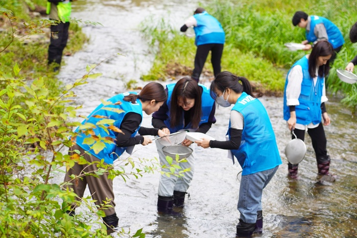 HK이노엔 임직원들은 직접 율동저수지 일대에 들어가 저서성 대형 무척추동물을 관찰하고, 관찰 내용을 자연활동 공유 플랫폼인 ‘네이처링 어플’에 기록하며 생물다양성지도 만들기에 동참했다. 저서성 대형 무척추동물은 수중 바닥에 사는 곤충, 조개, 게 등 눈에 보이는 무척추동물로 하천 환경을 평가하는 중요 생태 지표다.