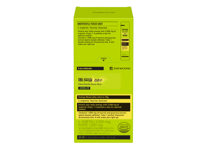 새롭게 출시된 샤인머스켓맛 역시 △아르기닌 2000mg △타우린 1000mg △식물성 카페인(과라나 추출물) 100mg △비타민B1·B2·B6 등 기존의 핵심 성분을 그대로 담았다. 특히 테아닌과 식물성 카페인을 2:1 비율로 배합해, 카페인 섭취 시 나타날 수 있는 긴장감은 줄이고 보다 건강하고 지속적인 집중력 유지에 도움을 준다.