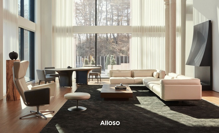 알로소는 국내 가구 브랜드 최초로 KOLAS 국제공인시험기관 인증을 획득했으며, 철재 프레임 기반 리클라이너 소파 특허도 보유하고 있다.
