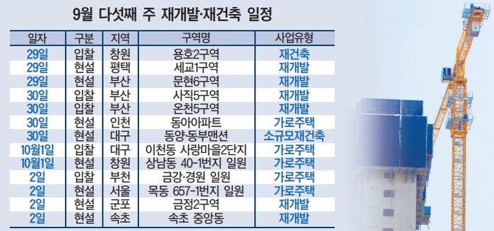 9월 다섯째 주 재개발ㆍ재건축 사업 일정. /사진:대한경제 DB |