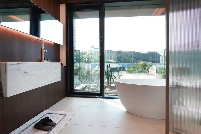 넥스트 배스는 OSC(탈현장) 공법으로 외부에서 사전 제작해 생산된다. 현장에서 수작업으로 시공하는 욕실과 달리 품질에 편차가 없을 뿐 아니라, 기존 제한된 타일 마감에서 벗어나 소비자 눈높이에 맞춘 다양한 고급 마감재 적용까지 가능해진다. 프레임부터 마감까지 일체형으로 제작하는 POD(포드) 욕실과 패널로 만들어 현장에서 조립하는 시스템 욕실 등 두 가지 설치 방식이 있다. 테스트 베드에는 두 방식을 각각 적용한 넥스트 배스를 공개한다.