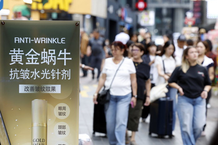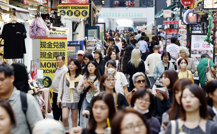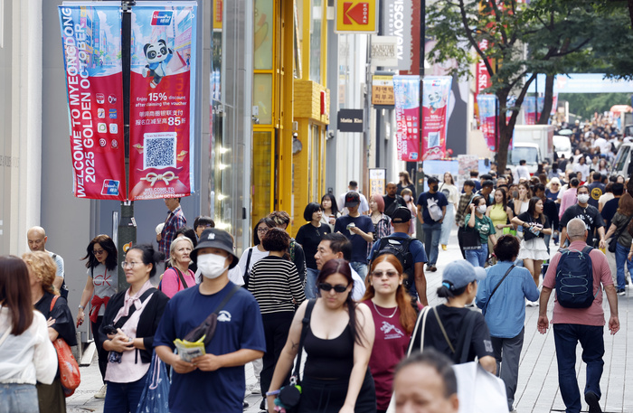 중국 단체관광객의 무비자 입국 첫날인 29일 서울 명동을 찾은 관광객들이 쇼핑을 위해 이동하고 있다. 3명 이상 중국인 단체관광객은 이날부터 무비자로 최대 15일 동안 대한민국 전역을 여행할 수 있다.