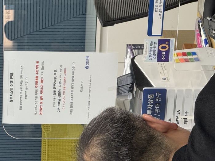 국가정보자원관리원(국정자원) 대전 본원 화재로 전산망 마비 사태가 나흘째 이어지는 29일 오후 서울의 한 시중은행에 관련 안내문이 부착돼 있다. / 사진 : 박호수 기자 |