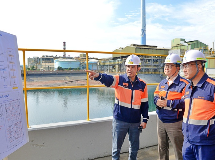 울산 온산제련소를 방문한 최윤범 고려아연 회장이 게르마늄 공장 신설 준비 현장을 점검하고 있다./사진: 고려아연 제공 |