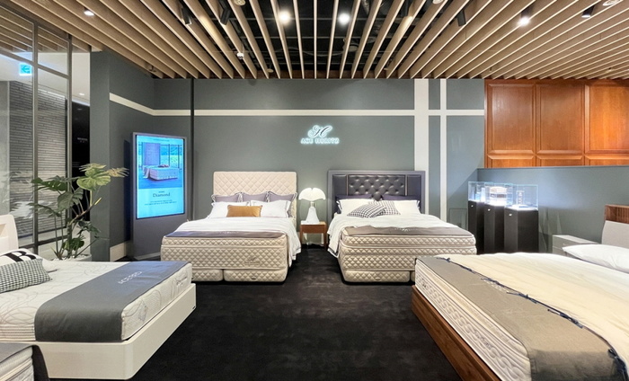 매장에서는 신제품과 베스트셀러를 전시한다. 프리미엄 매트리스 로얄에이스 라인업도 체험할 수 있다.