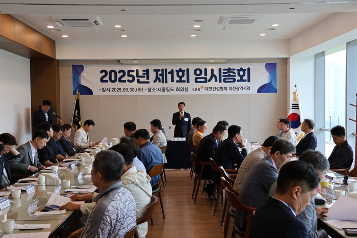 [대한경제=최지희 기자] 대한건설협회 대전광역시회(회장 최문규)는 30일 대표회원 45명이 참석한 가운데 ‘2025년도 제1회 임시총회’를 개최했다.