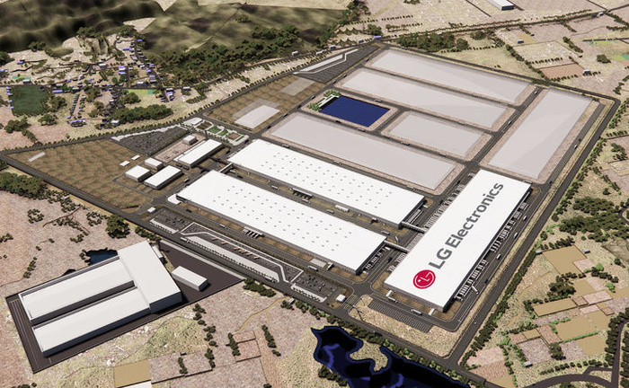 LG전자 인도법인 지분 15%에 대한 공모가 밴드(범위)가 최소 1조7384억 원에서 최대 1조8350억 원으로 최종 결정됐다. 주당 공모가는 최소 1만7000원(1080루피)에서 최대 1만8000원(1140루피)다. 처분 예정일자는 이달 13일이고, 최종 상장일은 이보다 하루 뒤인 14일이다. 사진은 지난 5월 착공에 들어간 LG전자 인도 스리시티 공장 조감도. /사진:LG전자 |