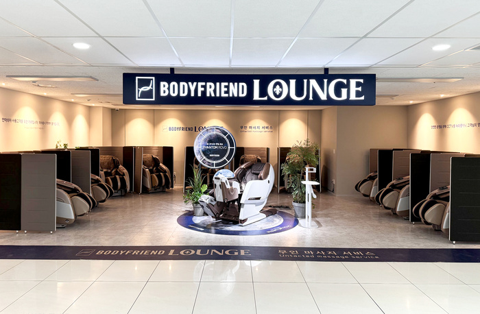 바디프랜드 공유안마의자 라운지가 조성되어 있는 곳은 전국 19곳의 고속도로 휴게소를 비롯, 김포국제공항, 남산서울타워, 롯데시네마 월드타워, 설악 델피노리조트, 제주 금호리조트, 뽀로로 테마파크, 제주연안여객터미널 등이 대표적이다. 추석 연휴 동안 귀성객과 여행객들이 주로 이용하는 시설들에서 쉽게 만날 수 있다. 바디프랜드 공유안마의자 라운지에는 다중이용시설 전용 마사지체어 ‘비프리(Be Free)’가 설치돼 있다. 사진은 김포국제공항에 설치된 바디프랜드 공유안마의자 라운지. /사진:바디프랜드 |