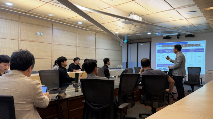 건원엔지니어링이 사내 임직원을 대상으로 삼표산업의 ‘블루콘 윈터’ 기술설명회를 진행하고 있다. / 사진=건원엔지니어링 제공. |