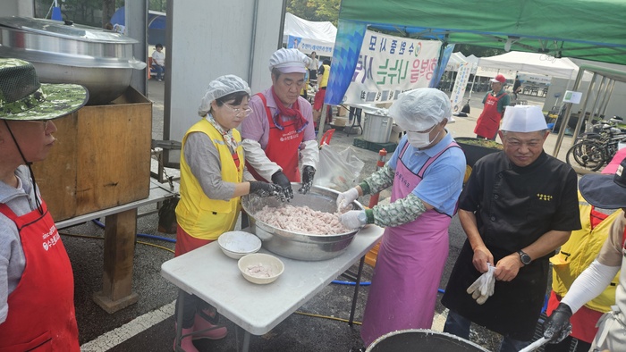 이 날도 늦더위가 기승을 부린 봉사에 나선 회원들은 이날 점심 3시간여 전부터 모여 재료를 재로 손질부터 소스를 만드는 팀,면을 삼는 팀 등으로 나뉘어 바쁜 일손을 놀렸다.