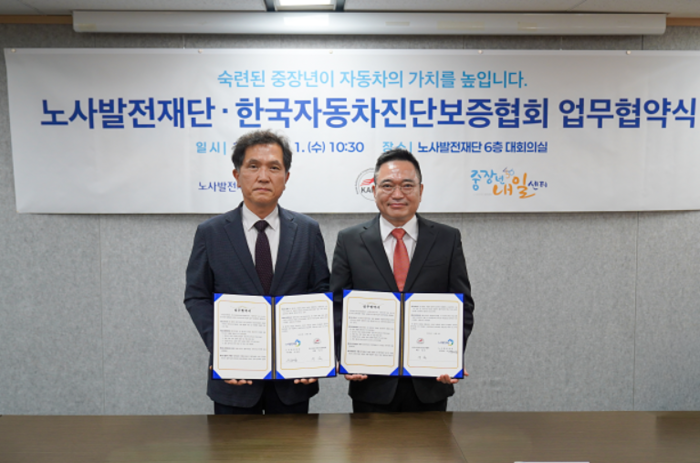 [대한경제=강주현 기자] 한국자동차진단보증협회와 노사발전재단이 1일 서울 노사발전재단 대회의실에서 자동차진단평가 전문가 양성으로 중장년 일자리 창출을 위한 업무협약을 체결했다.